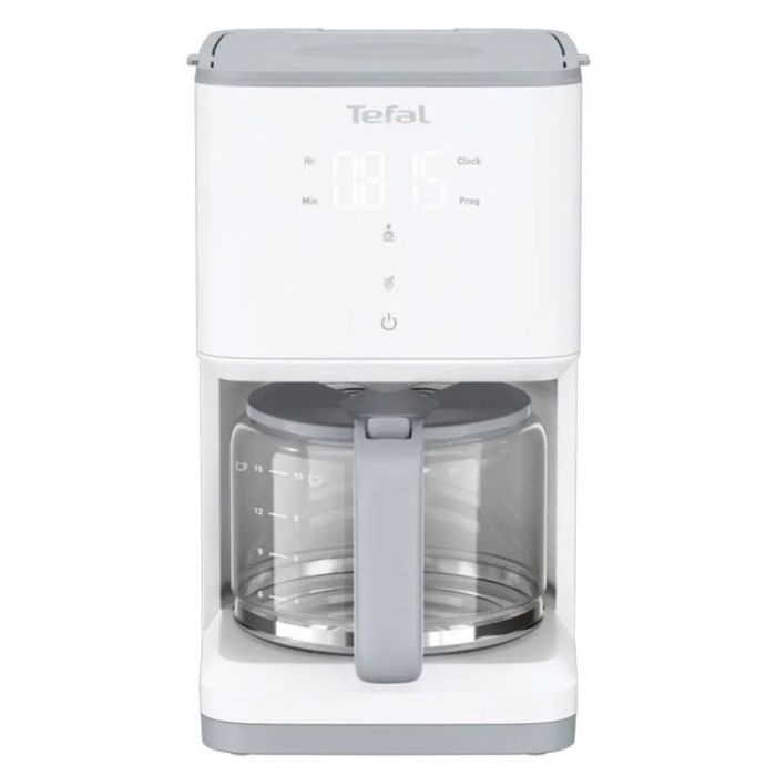 Cafetière Électrique TEFAL - Puissance: 1000 Watts - Capacité: 1.25 Litre - Nombre de tasse: 10 à 15 Tasses - Minuteur: Programmable - Système anti-goutte - Écran numérique - Verseuse en Verre - Fonction maintien au chaud - Arrêt automatique - Rapidité de préparation - Facile à nettoyer - Couleur: Blanc - Garantie: 1 an