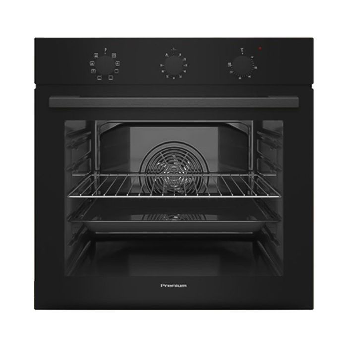 Four électrique PREMIUM - Largeur : 60cm - Capacité de cavité : 79 Litres - Chaleur tournante - Nombre de programmes : 8 programmes - Nombre de boutons : 3 boutons - Minuterie Mécanique - Contrôle Mécanique - Couleur : Verre Noir - Garantie 2 ans