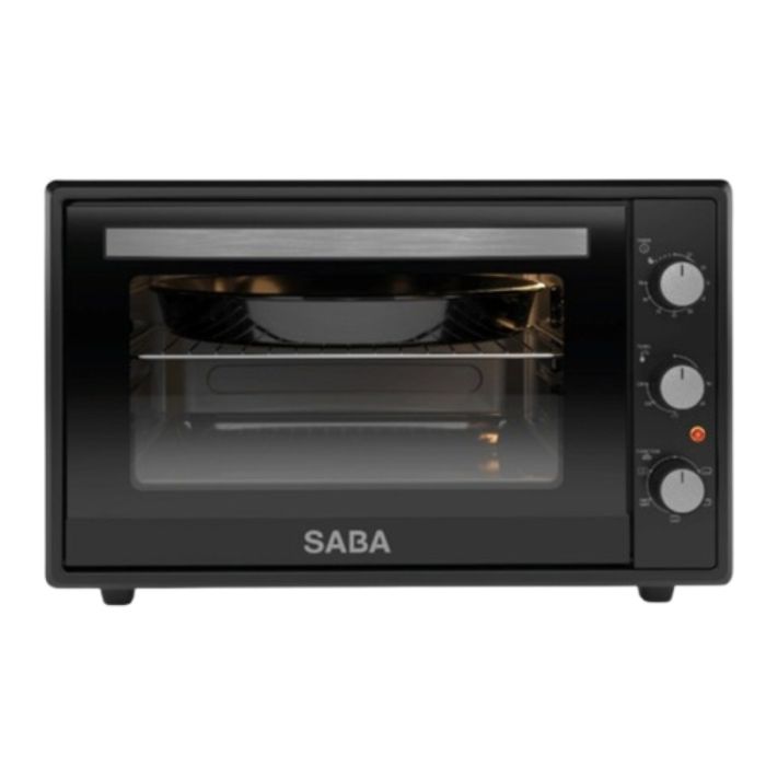 Four Électrique SABA - Volume: 45 Litres - Température Réglable - Minuterie: Mécanique jusqu'à 90min - Intérieur facile à nettoyer - Panneau arrière émaillé - Thermostat bimétallique - Porte escamotable à 3 niveaux - Lampe - Poignée en aluminium - Chaleur Tournante - Double verre - Finition élégante, s’adaptant à tout type de décoration de cuisin - Couleur: Noir - Garantie: 1 an